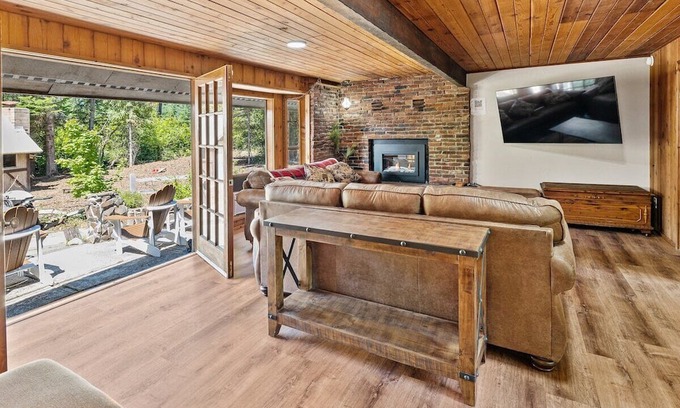 You will unwind in the hot tub! Bring your toys and hit the trails! This chic and cozy property has two cabins with plenty of privacy! You’ll have almost an acre of space to explore, unwind by the fire pit, get away from the noise and chaos, and play in comfort.