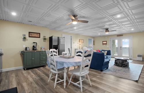Additional Amenities: This single-level home, with no stairs, includes central heating, a smoke alarm, a hot water kettle, a toaster, bed linens, hangers, a hair dryer, and even books and reading materials for a quiet evening in.