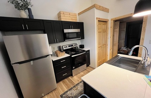Black Bear at Woodland Cabins: Black Bear is a one-bedroom layout, with a king sized bed, offering privacy between the sleeping area and the living/kitchen area. The sofa located in the living room, converts to a queen sleeper which is perfect for two children or one additional adult. Walking distance to the cabin lies a three-acre pond, inviting guests to enjoy fishing and leisurely strolls along the dam. Our wooded areas and fields are perfect for exploration and contemplative walks, where observing diverse bird species and wildlife becomes a cherished pastime. Regular guests include deer, wild turkey, red foxes, pileated woodpeckers, songbirds, and migrating waterfowl. For the fortunate observer, catching a glimpse of "Fraidy," the bobcat, adds an extra touch of wilderness charm!