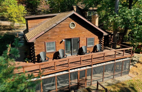 What of the outside areas that you’ll have access to when you book this beautiful property? Each of the main floors of the cabin has a deck area with seating and views of the woodland you’re sure to treasure. And speaking of woodland, you have 4 acres of it all to yourselves, with the creek 0.2 miles from the house. The journey from house to creek involves plenty of steps taking you down to the water, which of course means it’s a bit of a climb to get back to the cabin! But you’re up for an adventure with exercise, right? And why not relax around the firepit when you get back and plan what you’ll do on the next day of your stay?