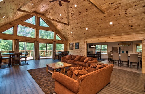Cabin is located on 7 private acres. Chalet has 6000 Sq. Ft. Of Living Space And Is Located Minutes From The Ski Slopes And Casino. The "Manor" Is Comprised Of 10 Bedrooms, 6 Bathrooms (see the bedroom and bathrooms breakdown below), Home Theater Room And Game Room Consisting Of A Pool Table, Shuffleboard Table, Poker Table And Foosball! The Manor Also Has Plenty Of Room For Corporate Groups, Family Reunions Or Bachelor Parties. The Manor Also Has WIFI Throughout, An Outdoor Jacuzzi which is emptied and refilled after every stay, and Fire Pit. Central Air-conditioning and heat throughout! We do supply the following items: Towels, Trash bags (2), Toilet Paper (2) per bathroom, and Paper Towels (2).
