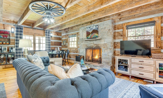 Get ready for some outdoor fun with friends and family when you retreat to this charming vacation rental in Whittier, NC! Cast a line at the on-site creek, chase waterfalls, or simply unwind in the private hot tub while the kids play cornhole. As evening falls, head inside the rustic 5-bedroom, 2-bath cabin for a cozy movie or board game night by the fire. The best of the Smoky Mountains awaits!
