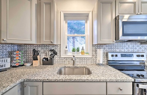 KITCHEN: Well-equipped w/ stainless steel appliances, central island w/ seating, Keurig, cooking basics, dishware/flatware
