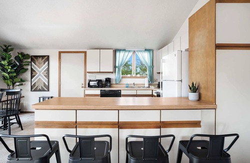 - Two bedrooms – one with a queen bed, the other with a queen/twin bunk bed (we also have a Joybird pullout sleeper sofa in the living room that’s very comfortable)