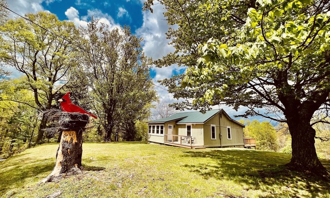 The Cardinal Cottage is perched on 11 beautiful acres just minutes to the New River Gorge. You will love this cottage’s amenities: Hot Tub, Seasonal Fire Pit, Cornhole, Game Room with foosball, dartboard, & card table with board games. Also enjoy the covered porch & two decks for wildlife viewing (deer & turkey are regulars and in summer fireflies too. Gourmet Kitchen. 2 Spa like baths with custom tiled showers & Bluetooth speakers. Smart TVs. We are pet friendly (See details below for pets).