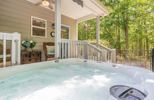 Private♨️Hot Tub🍔BBQ Grill 📺ROKU 📧WiFi🌳Forest🆒Vibe📺43' HDTV 🎬 Disney+ 🍿 Hulu 🛏️Queen Size Bed🎦 Netflix 📻 Pandora❤️Relax 🛍️Shopping🚶🏼Stroll Downtown Dahlonega 🛋️Terrace ❤️ Recharge🍷Wineries🍹