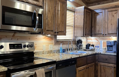 Brand New in 2023. Beautiful 3 Bedroom / 2 bath luxury cabin with Hot Tub is located in the prestigious gated community of Legacy Trails. Come and enjoy the privacy and seclusion this cabin offers, just a short 25 minutes north of Hochatown in the scenic Kiamichi Mountains. The fully furnished Kitchen has granite counter tops and is fully stocked with all the amenities of home! With 3 bedrooms and 2 baths, Villa Susan offers ample privacy and room for families or couples! The Utility room, offers a full size washer and dryer. On those chilly evenings, nestle up to the beautiful stone fireplace in the living room or choose to sit outside around the fire pit, taking in the stars and roasting smores. Firewood is provided! Plenty of seating for all on a large deck with lounge chairs to soak in the sun, read a book or just rest in nature's beauty. A charcoal park style grill for those who enjoy outdoor cooking is located just off the back porch and enjoy an outdoor lunch on a full size custom picnic table! Come soak in the private hot tub located on the fully covered back porch! Deer, squirrels, foxes and other wildlife are home to the area! Private access to the Mountain fork river is just minutes away where you can enjoy fishing, swimming and kayaking. Kayaks, paddles and life vest are available during season, and are subject to unavailability during inclimate weather, high or rising river levels and cold temperatures.