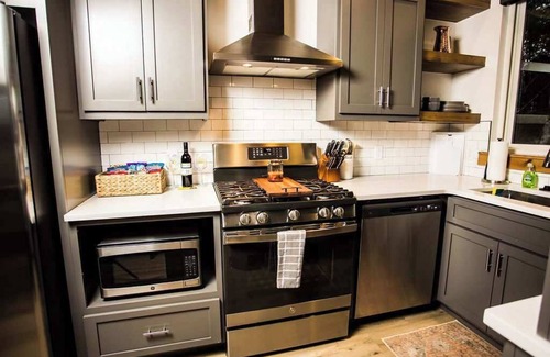 Full Kitchen - Microwave, Fridge, Stove, Sink, Dishwasher, Each of our cabins comes equipped with a drip coffee maker, along with pre-portioned coffee and filters tailored for your convenience. Additionally, we offer creamer and sugar to enhance your coffee experience. Should you have a preference for a particular brand or coffee accessory, feel free to bring your own along for your stay.