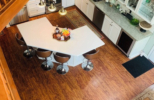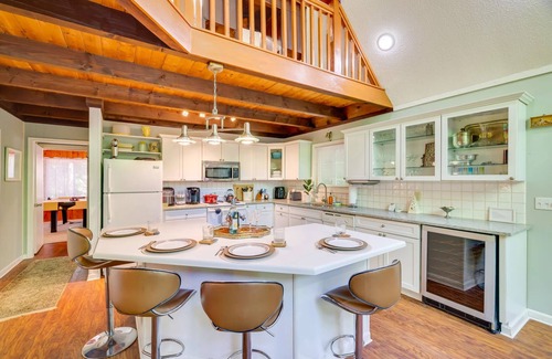 🍳 Fully stocked kitchen with an island, built-in wine fridge, and plenty of cookware, dishes, flatware, and serving pieces. The island is ideal for morning coffee or tea while watching the sunrise or for banter between guests as meals are prepared.