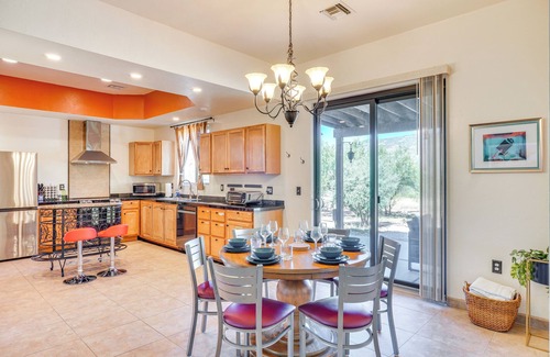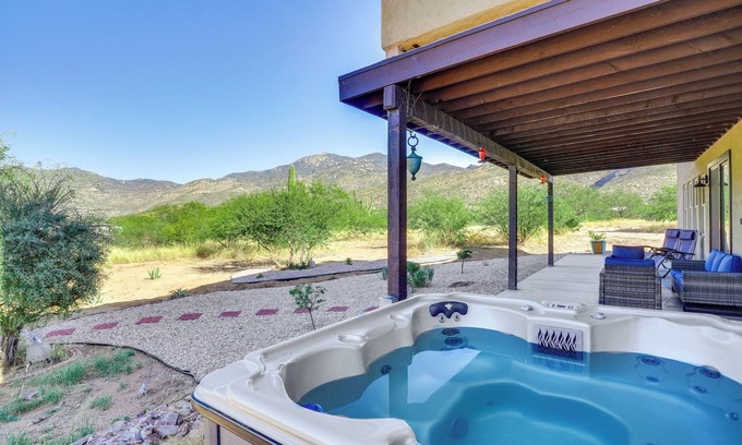 Nestled amongst the tranquil desert landscape, this Vail, AZ, vacation rental offers breathtaking views and superior comfort. With 4 bedrooms, 3 baths, a full kitchen, a pool table, and an outdoor space with a hot tub and ample seating, this home is perfect for both relaxation and entertainment. Outdoor enthusiasts can explore renowned attractions, like Colossal Cave and Saguaro National Park — both are a short drive away!