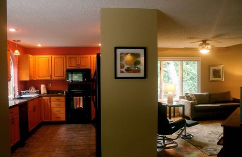 The Tree House is very warm and inviting, with comfortable furnishings offering a classic retro mid-century modern decor. But we have not forgotten modern conveniences...free wifi, 52" cable flat screen TV, Blueray DVD, stereo with aux cord, dishwasher, washer/dryer, air conditioning, hairdryer, iron, etc.