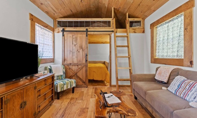Step into `The Sit and Stay Cabin`, a new standard of cabin with a prime location in the Red River Gorge area. This newly constructed tiny cabin was finished in June of 2022, and it shows! The Sit and Stay Cabin offers a modern take on your standard, rustic cabin and has sleeping arrangements for 6. This cabin may be tiny, but it has all of the essentials and will leave money in your wallet for numerous adventures.