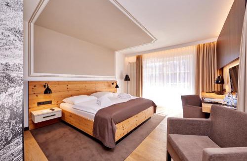 This modern, 4-star hotel in Grainau lies directly on the banks of the scenic Badersee Lake. Features include a conservatory restaurant with panoramic mountain views, and classically furnished rooms with a balcony. The bright rooms at Hotel am Badersee offer free WiFi, a desk and a flat-screen TV with cable channels. A hairdryer is also provided in the private bathroom. The Werdenfels restaurant serves Bavarian and international cuisine, and snacks are available in the café throughout the day. The bar features a fireplace, comfy armchairs and a flat-screen TV with Sky Channels. The spa area includes massage facilities and a sauna with beautiful views of the surrounding mountains.