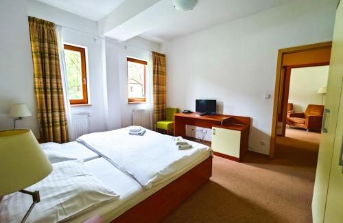 Offering an outdoor pool, Hotel Bazant is set peacefully 1.2 mi away from the center of Karlovy Vary and only 656 feet away from Tepla River. Guests can make use of the free WiFi in the Bazant’s public areas. Bazant’s rooms are elegantly decorated in warm colors and feature classical solid wooden furnishing. They include a flat-screen TV with satellite channels. Leisure facilities include a ping-pong table and a playground. The nearby Krusne Mountains provide an ideal setting for hiking and biking. A tennis court is 984 feet away. A local bus stop is a 2-minute walk away and offer frequent links with the center of Karlovy Vary. There, guests can find the famous Mill Collonnade, a casino, as well as numerous cultural activities and a vast choice of shops and restaurants. Pilsen can be reached within 50 mi. Karlovy Vary Airport is 5 mi away. Free on-site parking is provided.