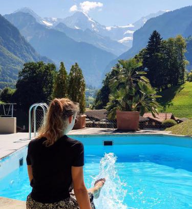 The hotel enjoys an beautiful and quiet location above Wilderswil. It offers panoramic views of the Eiger, Mönch and Jungfrau mountains and of Lake Brienz and features a heated outdoor pool (open April to October, weather permitting). The Hotel Berghof Amaranth has a large terraced garden and a children’s playground. There is a rich daily breakfast buffet. It takes you a 10- to 15-minute walk to reach the Wilderswil train station, from where you can catch a train to the Jungfrau mountain. Interlaken can easily reached by bus. You can get the free pass at the reception of the Berghof Amaranth. You can park your car for free on site and make use of free Wi-Fi internet access.