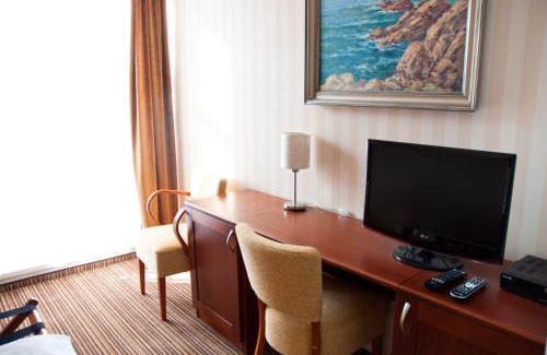 By the Swan Lake in Rajecke Teplice, Hotel Encian is 328 feet from Thermal Spa Aphrodite; it houses a restaurant with a bar and offers rooms with a flat-screen satellite TV and a fridge. WiFi is in all areas for free. Toiletries and a hairdryer are included in the private bathroom, which is a standard for each room at the Encian hotel. Some units have a view of the lake. Slovak and international food, as well as grill specialties, is served at the Encian’s. Bicycles can be rented on site and free private parking is possible on site. A bus and train station is 1312 feet away.