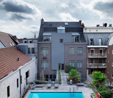 This luxurious family-run hotel in the Patershol District of Ghent offers rooms in 2 historic buildings and benefits from a free heated swimming pool. It is located 328 feet from the Gravensteen Castle and a 10-minute walk from Saint Bavo’s Cathedral. Each of the rooms at Hotel Harmony features warm décor, a coffee machine and modern bathrooms. Some rooms come with views of the oldest parts of the city. The air-conditioned rooms also boast satellite TV, a work desk and a mini-bar. The elegant lounge features dark-wood décor and serves drinks including wines and cocktails. Guests can also enjoy a selection of meals. The daily buffet breakfast includes croissants, smoked salmon, boiled eggs and much more. Saint Peter's Train Station is located 3.1 mi from Harmony Hotel. If you're traveling by tram, please note that there have been recent changes to the tram plans. For the most up-to-date information and to plan your route accordingly, we recommend using the website of DeLijn. The historical town of Bruges is a 35-minute drive. Brussels is 40 minutes away by car. The hotel offers an airport shuttle service on request.