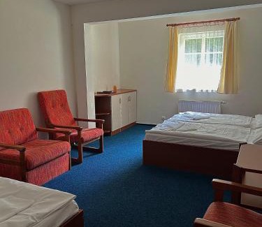 Surrounded by woods, 15 minutes’ drive from the Golf Club Harrachov and the Souš Reservoir, Hotel Lesní Chata is located 66 feet from a ski slope. There is also an outdoor court with badminton, table tennis and petanque facilities. The rooms include a private bathroom and satellite TV. Free Wi-Fi is provided in the entire building. The Kořenov Train Station is 2953 feet away and Harrachov can be reached within a 15-minute drive.