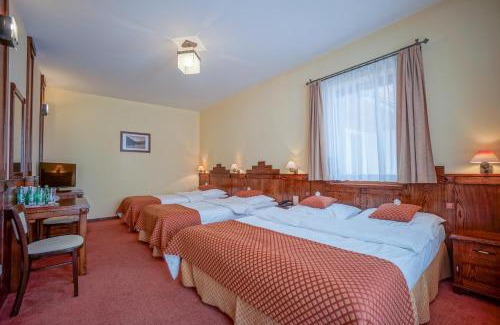Hotel REDYK Ski&Relax is located in Ząb, north of Zakopane and offers stunning views of the Tatra Mountains. Guests can use spa facilities which include a sauna and a hot tub. Its rooms have free Wi-Fi and a private bathroom with a shower and a hairdryer. All rooms at the Hotel REDYK Ski&Relax are spacious, bright and are decorated with wooden furniture. Almost every room comes with a balcony and a working space. Ironing facilities are available at the reception. A buffet breakfast can be enjoyed every morning at the restaurant. In the evening, guests can relax with a drink at the bar. Guests can relax at the on-site wellness center with a hot tub, sauna and massage treatments. Front desk staff is available 24 hours a day and can help with organizing sightseeing trips. There is a children's playground and bicycle rental on site. Guests can also organize a bonfire.