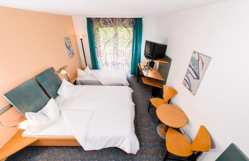 Family-run since 1999, this stylish hotel is located at the Feuchtwangen West junction of the A6 and A7 motorways. It is close to the historic towns of Rothenburg ob der Tauber, Nuremberg and Ansbach. Hotel Residenz is 164 feet from a motorway restaurant and 1640 feet from a popular fast-food restaurant. It is 2625 feet from Bavaria's 2nd-largest casino, and casino tickets are available at the hotel reception. The comfortable design rooms at Hotel Residenz include satellite TV, a desk, wardrobe, luggage storage space, an armchair and coffee table. Free WiFi is available. This is an eco-friendly hotel that uses solar panel heating and warm air pumps for hot water, as well as a block thermal station for heating. A mains power switch enables guests to sleep with lowered electromagnetic pollution levels at night.