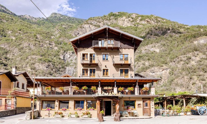 Armanac de Toubie is a small, friendly hotel offering bright, modern rooms in a great location in pretty Arnad. Family-run, it also has its own restaurant and pizzeria. Recently renovated, Armanac de Toubie now provides rooms with free internet access and LCD TVs. Many have their own balcony. Armanac de Toubie is well-positioned in this beautiful part of the Valle d’Aosta, whether you want to try out local foods and wines or enjoy all the sports available in the area. A famous climbing-wall is located nearby and mountain trips can be organized as well as cultural trips to see nearby castles. The hotel can organize a variety of food and wine-tasting tours, allowing you to see the prestigious Lard d’Arnad, a cured pork product, being made. The Armanac’s own restaurant serves characteristic local cuisine at a great price, as well as some of the best pizza in the area. During winter season the hotel may only be bookable for long stays or weekly stays.