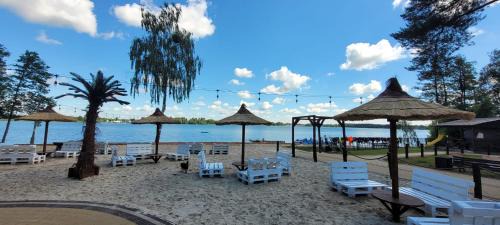 Located on the shore of Białe Lake surrounded by woods and featuring a private beach with a pier, Ośrodek Sanvit features rooms and private bungalows with free Wi-Fi. Every room in Sanvit features a flat-screen TV with cable channels and a bathroom with a shower. Bungalows feature a terrace and rooms, a balcony or a terrace exit. Guests can rent bicycles and water equipment – sailing boats, kayaks and waterbikes, at extra charge. There are swimming lessons available for children. There is a playground featuring a trampoline, a games room with video games and kids club. You can also play beach volleyball or table tennis. Sanvit features a grill bar with a spacious patio offering great lake views. There is also a restaurant specializing in Polish and regional dishes – offering buffet breakfast. A choice of drinks is available in a lobby bar. It is 1.4 mi to Glinki Lake. River Bug is 5 mi away