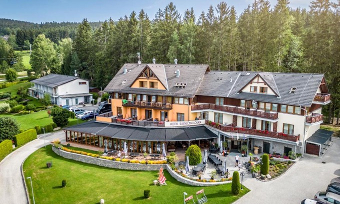 Best-rates for the Hotel SLUNEČNÁ LOUKA starts from $145 per night with includes Spa, Restaurant, Child Friendly, Kitchen, View, Wheelchair Accessible, Balcony/Terrace, Fireplace/Heating, Breakfast, Hot Tub, Ocean View, Security/Safety, Skiing, Wellness Facilities, Guest Services, Barbecue/Outdoor Cooking, Internet, Accessibility, Business Services, Sports/Activities, Parking, Pool, Oceanfront StayAndPlay offers fully equipped golf villas, golf hotels, golf resorts, luxury golf cabins, and exclusive golf retreats, making it easier than ever to find your perfect golf escape — ideal for families, peaceful getaways, or pet-friendly retreats with the whole crew.
