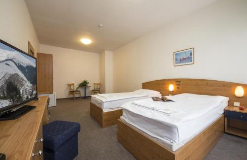 Hotel SOREA MÁJ is surrounded by the Low Tatras National Park, at the entrance to the Jánska Valley and at the end of the historic village of Liptovský Ján. The hotel offers accommodations in single and double rooms, family rooms, suites and room for disabled clients. Rooms are equipped with a bathroom, a toilet, satellite TV, a telephone, a safe and a balcony. Room for disabled clients is located on the ground floor without a balcony). WiFi connection is provided and parking is possible next to the hotel. A varied offer of dishes are served in the hotel restaurant with views of the West Tatras. Breakfast and dinner are served in a buffet style manner with hot and cold dishes, lunches are served a la carte. A wide range of cocktails can be enjoyed in the BISTRO café. Additional services, for an extra charge, include an indoor swimming pool with thermal water with beneficial effects on the respiratory system, muscle system and skin problems a wellness zone with a sauna, massages, relaxation baths, sea baths and a fitness center, a big conference room with capacity 150 people and 2 small conference rooms with capacity 30 people. The guests can also enjoy billiards, a table tennis, board games and a kid's corner.