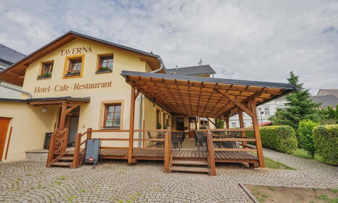 Located in Javorník, 28 miles from Polanica Zdroj Train Station, Hotel Taverna provides accommodations with a terrace, free private parking, a restaurant and a bar. The property is around 28 miles from Polanica Zdrój Mineral Water Pump Room, 28 miles from Chess Park and 18 miles from Open-air folk museum. Free WiFi is available throughout the property and Złoty Stok Gold Mine is 7.7 miles away. All guest rooms at the hotel are equipped with a seating area and a flat-screen TV with satellite channels. Minieuroland is 21 miles from Hotel Taverna, while the Holy Virgin Mary's Assumption church is 28 miles away.