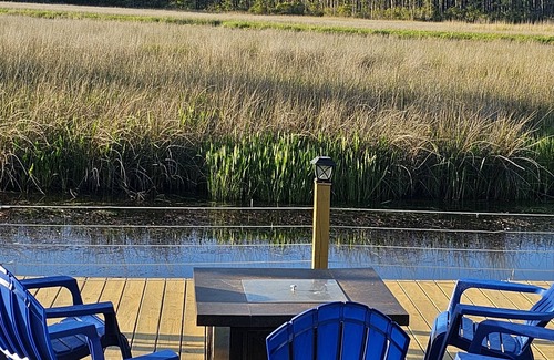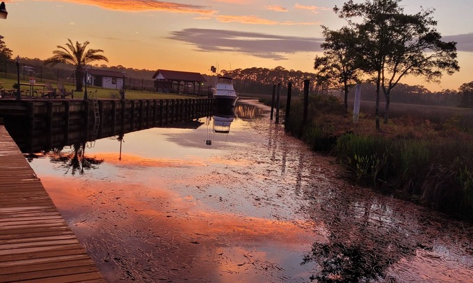 The 70-foot deck sits on 6- to 8-foot-deep canal that leads right to Pascagoula River. You will see many bird species. The deck has a beautiful view of protected watershed and marshes of the Pascagoula River. Birders will love the close-up connection you get. Fish right off the dock! Common fish in the river are TROUT,CHANNEL CAT,SUNFISH,BLUGILL,BASS,DRUM,SNAPPER. Mornings are nature at its best. Birds singing and flying everywhere to start the day. Pelicans are extremely common, and you can see them up close a lot with ducks as well. You may also see an occasional Alligator swim by. It can be fun and educational.