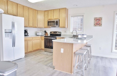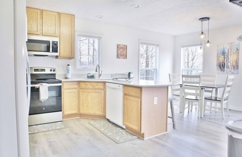 Welcome to Blue Horizon – a modern mountain home on Massanutten’s closest residential road to the slopes, lifts, lodge & village! No single-family homes are located closer. Enjoy quick access to the resort’s best attractions. Renovated with plank floors, comfy beds, stylish furniture, updated toilets, EV charger, and a 7-person hot tub. Fast WiFi, 4 TVs, games, kid’s room with foosball & pinball, and a screen porch. Fresh linens, towels, and EASY no-chore checkout for a relaxing stay.