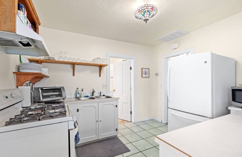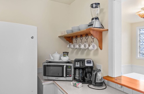 The kitchen in the front house is perfect for simple meal prep when you need a night in. You'll find all your basics to get breakfast, lunch or dinner on the table. Enjoy a 2-in-1 coffee maker with both Keurig and drip options. Each studio is equipped with its own efficient kitchenette so you can have a cup of coffee before joining the rest of the group!