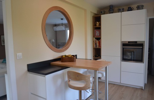 equipped oven, microwave, dishwasher, washing machine, iron, kitchen tools (robot, mixer bowl, toaster, fruit press etc ...) washing machine, 3 car parking