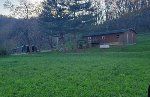 The house is set above the road with a creek acrossed the field. You can sit on the deck and the views are amazing or sit in the living room in front of the electric fireplace and read a book. You are at least a mile from a state road so you can go for a walk along the creek and not have to worry about much traffic. In the evening relax by the outside fireplace with a crackling fire. At&t has service at the house but no Verizon service, and no wifi. The house has well water with sulfer in it. It has a smell but is fine. Water Well is treated weekly with chlorine tablets so watch washing black clothes. Direct TV in living room, master bedroom TV has Nintendo hooked up. We live 10 minutes away so if you need anything during your stay we can help.