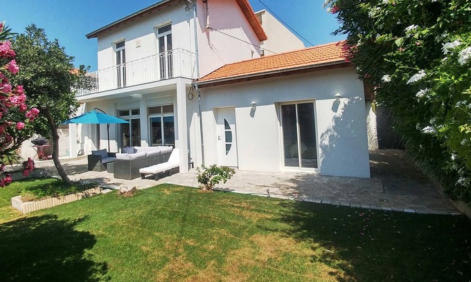 Rent old fisherman's house completely renovated, ideally located close to the beach (350m) - Croisette (400m) and all shops (convenience stores-bakery-pharmacy-post office-newspapers-hairdresser-fishmonger-butcher-bank distributor 200-250m) in withdrawal from the street (private road) in a peaceful green setting in a garden, Pointe de la Croisette. An oasis of tranquility, we park the car and everything is done on foot! The luxury of a real vacation!