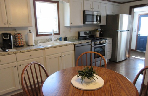 The House: $295 avg. per night, has lots of charm, sleeps up to (8) with 3-Bedrooms and 1-Bathroom. Five Beds: 1st floor BR w/Queen size bed, w/sm. wall mount flat-screen tv. 2nd floor (north) BR 2-Twins XL beds (can be connected to make a King size). 2nd floor (south) BR Full over Full Bunk Beds (2 full size beds). Large 1st floor Bathroom, 1st floor Laundry (full size machines). Nice size Kitchen (fully supplied) plus Dishwasher. Living Room has two Leather Sofas and Big Screen T.V. w/Sound Bar. Also a Nook Area before the Outside Deck. This House will receive you & yours in a very comfortable way, with the added "Outhouse" Bathroom Facilities and WiFi Lounge Area (The Outhouse Facilities is included if needed with cleaning fee).