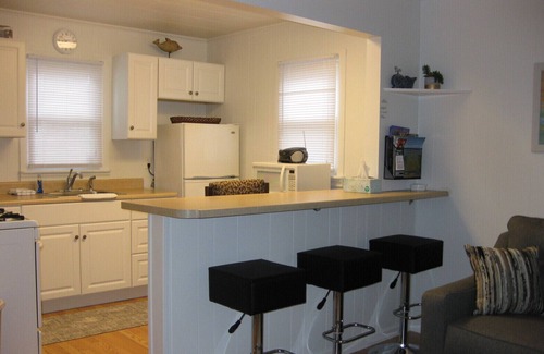 The Cottage: $220 avg. per night, Cozy and Warm, sleeps 4 with a foldaway cot if needed. 4 Medium size rooms, Kitchen (fully supplied), Living Room w/Queen Sleeper-Sofa, Bed Room w/Queen size Bed (fully supplied). Bathroom (fully supplied). Also Large Outside Deck with excess to the Backyard Park with Basketball Court and Fire Pit.