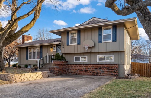 Book a stay at your home-away-from-home nestled in the heart of Lee’s Summit. This 5 bedroom, 2.5 bath home is centrally located in between Summit Fair and Historic Downtown Lee's Summit. The primary suite offers a walk-in closet, en suite bathroom, and futon for additional seating or sleeping. The fifth bedroom can be found on the lowest level, doubling as an entertainment space. The sunroom has a dedicated workspace that opens up to a spacious patio, ideal for grilling or relaxing.