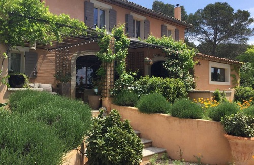 We offer our typical Provençal house of 200m ² in a walled garden without opposite of 5000m ² where you will be able to benefit from a traditional swimming pool of 10x5 heated and reassured. We are oriented south-west to enjoy the sun until his bed.