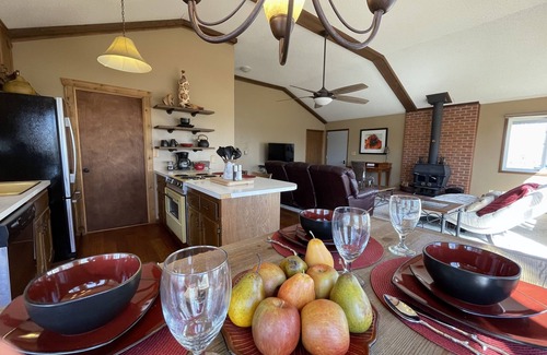 You can enjoy peace and serenity by the open Fire Pit, large wrap around porch or indoors in the large open living space with windows all around you you will feel like you are outdoors.