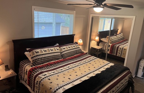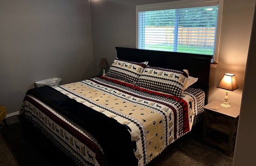 Relax with the family in this quiet, peaceful home featuring a wood stove, AC, a large front deck with fire pit and patio furniture, backyard patio with grill and a fully fenced yard, full kitchen with a dining bar and dishwasher, 2 bedrooms, 2 bathrooms (1 shower), washer & dryer, and a large family room with a smart TV in each room, wifi (see below) and board games. Comfortable for up to six guests.
