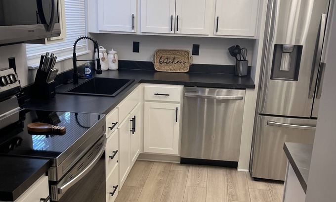 Charming brick home fully remodeled with a modern, bright and cozy feel. Quiet neighborhood. Spend the evening after work or play relaxing on the patio in the backyard and hang out making smores on the firepit for an evening snack. Parks and golf courses nearby.