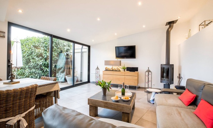 The contemporary style cottage, is composed of a garden, a large terrace, a duplex bedroom and a living room with fireplace. The kitchen is fully equipped with oven, induction hob, dishwasher, washing machine and Nespresso machine. The living room includes Ipad, flat screen TV and DVD player. You have free WIFI and parking spaces. The So'Home is 200m from various services, including a bicycle rental service, a catering service and several wine tasting areas are available.