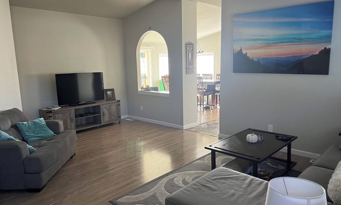 Quaint home, 25 minutes from PDX, 20 minutes from the Columbia River, 40 to beautiful Mt Hood. Spacious 3 bedroom, two full bath, large living room and kitchen area. View of Mt Hood from back patio. Close to shopping if needed.