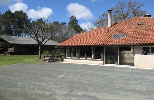 2 bedrooms in bed of 140 and a mezzanine with 2 beds in 90. shaded ground at the edge of the forest with a garden furniture and a barbecue.
