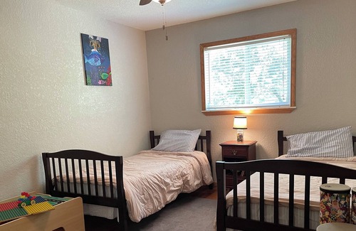 The cottage has three bedrooms, two bathrooms, a full kitchen, a dining area, a living room, and small office space. There is room for a family of six. Absolutely, NO parities allowed. Quiet hours are 9 PM - 8 AM. Please be respectful of our neighbors.