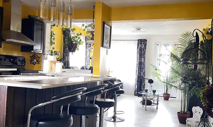 House of Tranquility is a place to relax and enjoy the comforts of home. Beautiful garden and patio setting. Coffee and tea provided plus all kitchen appliances and cookware. Enjoy your stay 🌹