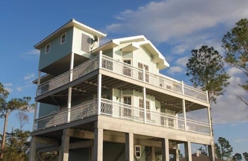 Spacious 4 Bedroom 3.5 Bath house on main Bayou Mallini. Breathtaking views from all of the Balconies. Fully equipped with everything you could need. Open Living area. Minutes to the Wolf River and Jourdan River. Enjoy sunsets on the porch. Close to