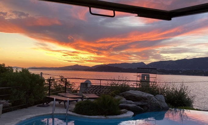 Ideally situated at 300m of the sea, very quiet, completely renewed, panoramic sea view, swimming pool has debordement warmed, any possible activites