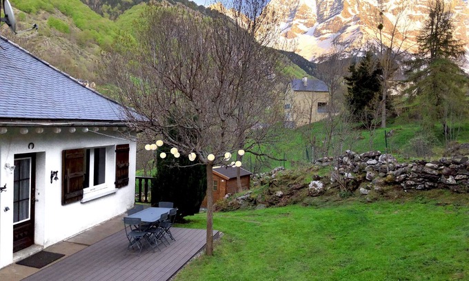 Our house is unique and detached in Gavarnie (1400m altitude) in an exceptional setting with a large garden bordered by a stream "de Holle" with its waterfalls, 2 terraces, balcony, view of the cirque de Gavarnie and the surrounding mountains. Very easily accessible even in winter. The village centre is a 7 minute walk away. Bed linen is provided free of charge. Free street parking subject to availability.